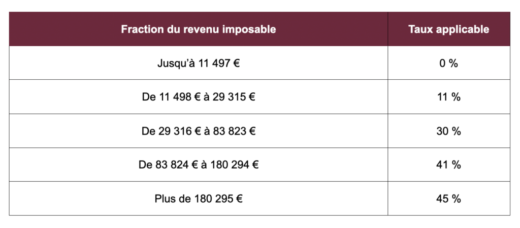Le barème de l’Impôt sur le Revenu, normalement indexé sur l’inflation, devrait être gelé si aucun Plan de Loi de Finance n’est adopté avant Mai 2026. Ainsi, nous aurions le même barème que pour la déclaration de nos revenus 2024